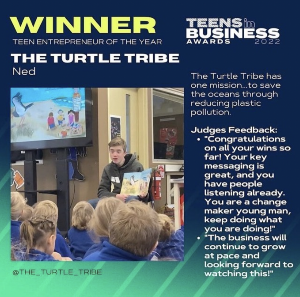 Ned Heaton, 15 year old founder of The Turtle Tribe was this week crowned as Australia’s Teen Entrepreneur of the Year for his mission to save the oceans from plastic pollution.